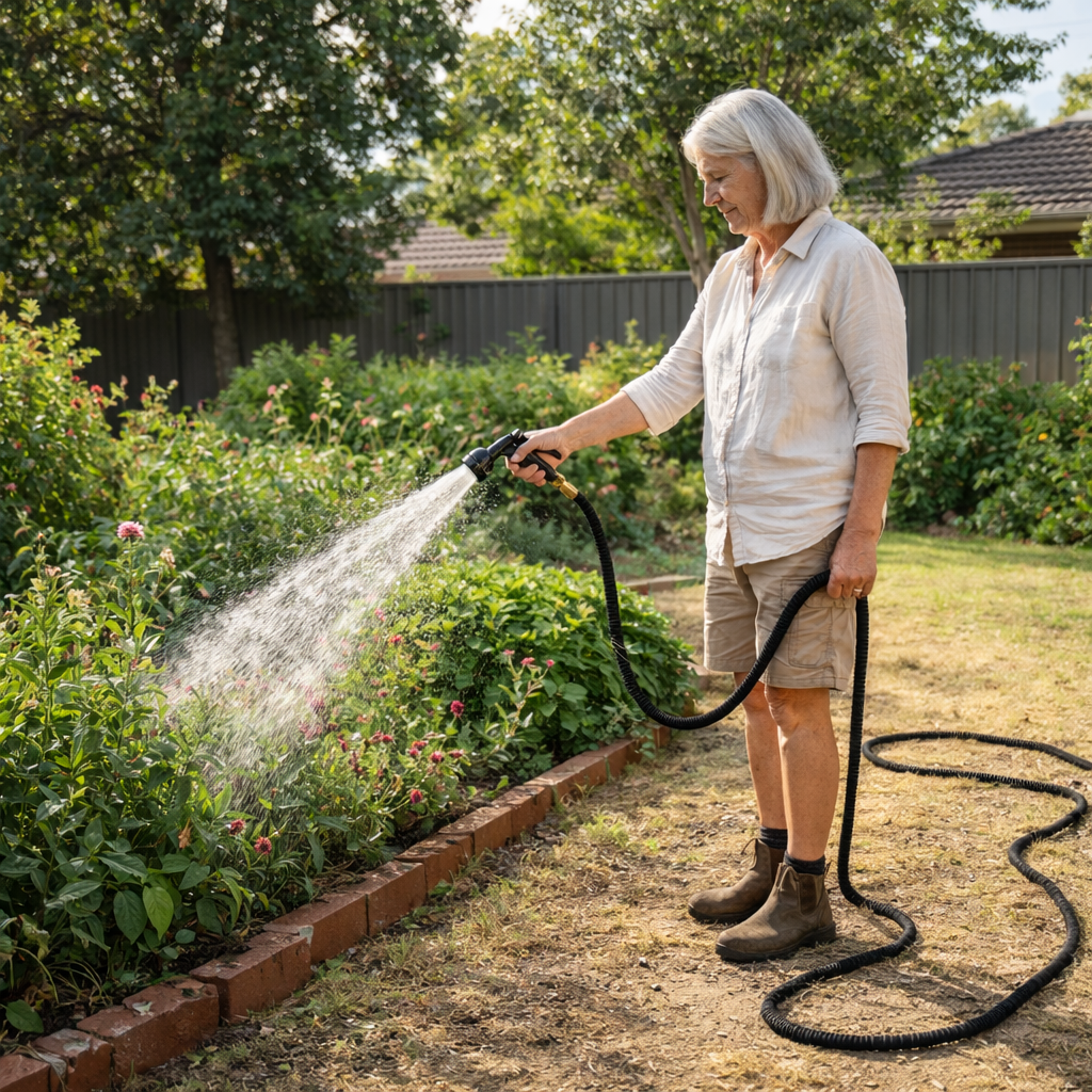 Our Expandable Garden Hose stretches with water pressure and retracts back neatly when done. Solving the common problems of heavy, tangled hoses that are awkward to pull around and pack away. Perfect for gardens, lawns, patios, cars, and outdoor cleaning - you’ll wonder how you ever lived without it!